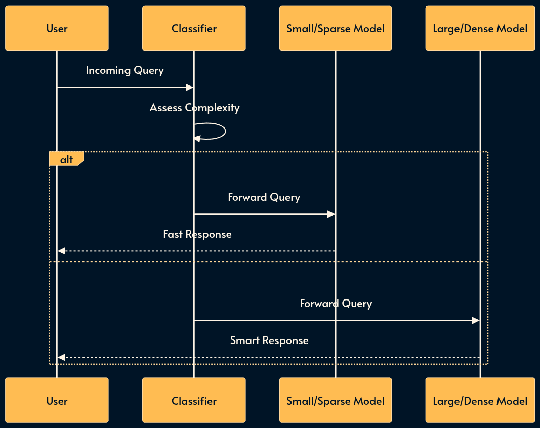 Cons: Routing logic adds complexity; potential for routing errors (sending a hard query to a dumb model results in failure).