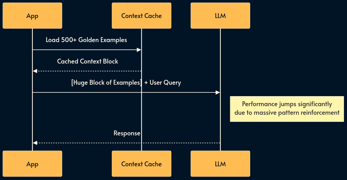 Cons: Extremely expensive (high token count) unless paired with Context Caching (pattern 10); latency can be high for the first call (pre-fill time). Does’t work well with SLMs and Edge AI which typically have smaller context window.