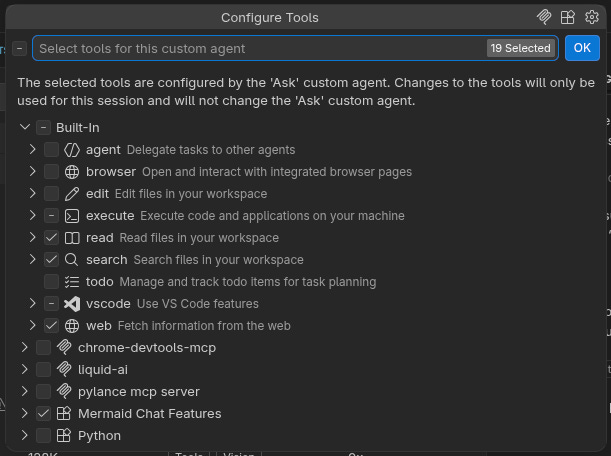 That “strictly forbidden from modifying files” is mechanically implemented in VS Code Ask Mode through limited tool access: