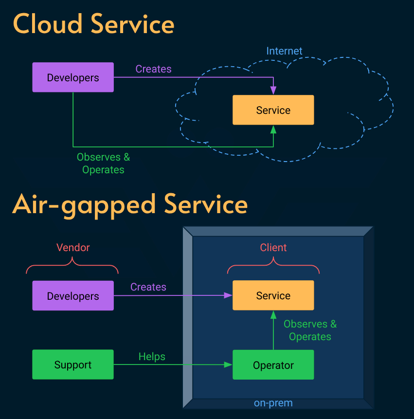 All those systems were air-gapped, meaning the team that builds the software has no access to metrics, logs or runtime.